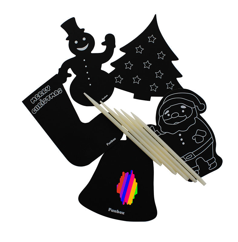 Each kit comes with a small stick that the child uses to scratch the black part of the picture, revealing a range of gorgeous bright colours hidden underneath!