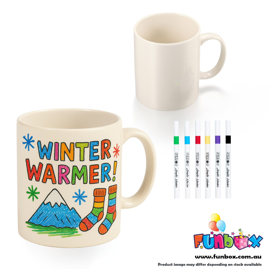 Our Colour-In Winter Mug Kit lets kids unleash their creativity and design a mug that’s truly one of a kind! With a blank ceramic surface and a set of vibrant markers included, this hands-on activity is perfect for creating personalised gifts or simply enjoying a cosy, crafty moment.