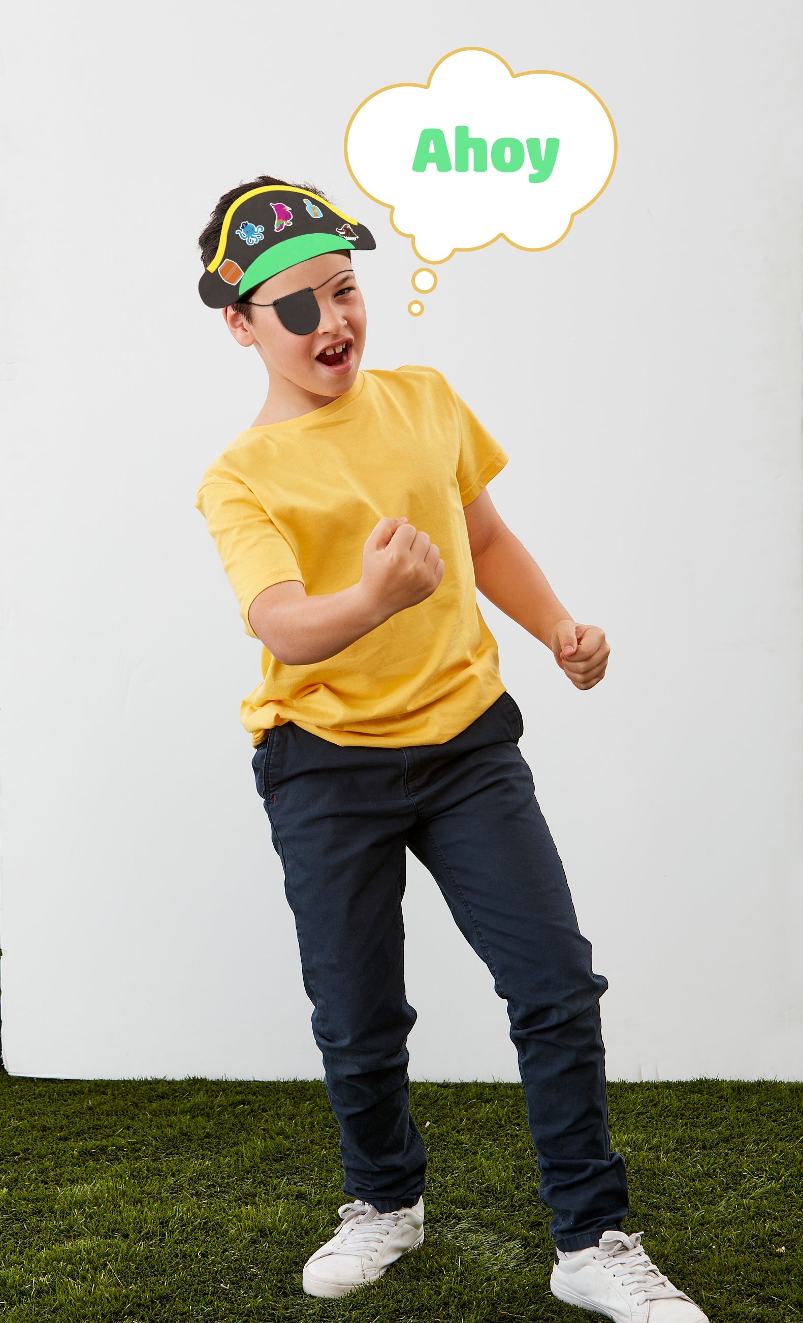 Plunder and explore the high seas in style with this easy-to-make kit that includes stickers for decorating. You'll have a stylish pirate hat and eye patch in no time, to wear on your next treasure hunt!