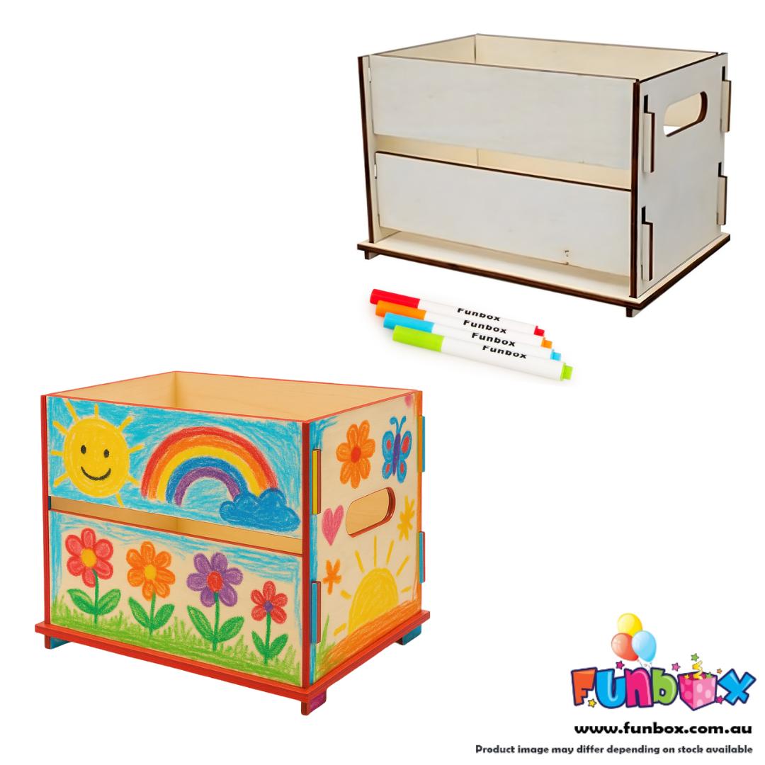 Crafted from natural plywood, the tidy box comes with a smooth finish that's just waiting to be personalised using the included markers. From colourful patterns to bold names, kids can make their box as unique as they are.