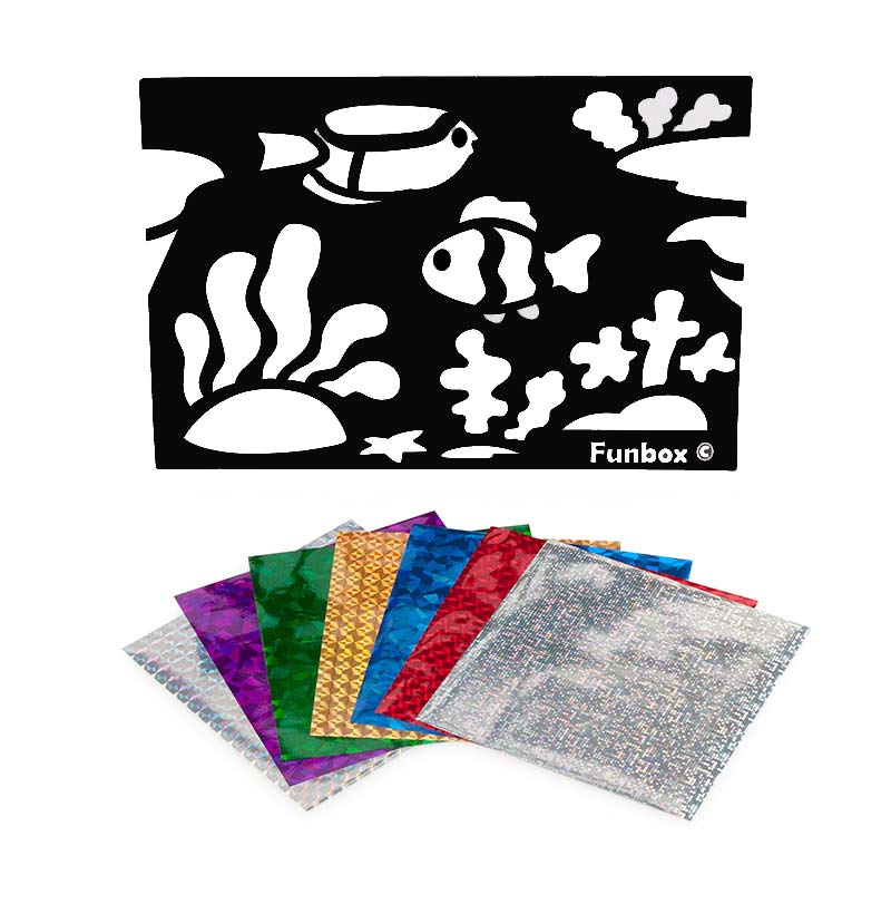 Kit includes an A5 Foil Art cardboard sheet and 7 pieces of holographic paper